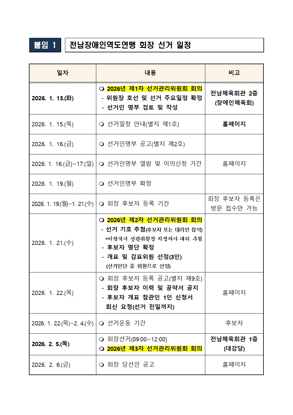 [전남] 전라남도장애인역도연맹 제3대 회장선거 일정 공고